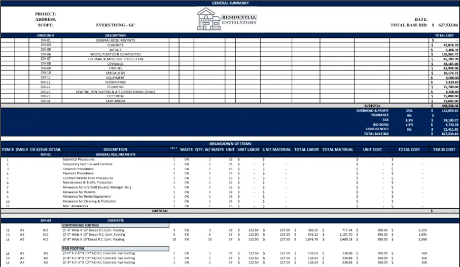 Residential Bid Estimating